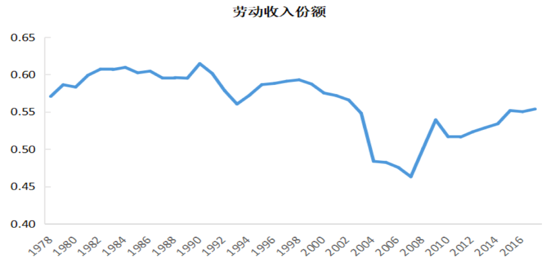 图6:1978-2017 年我国总体劳动收入份额变动情况